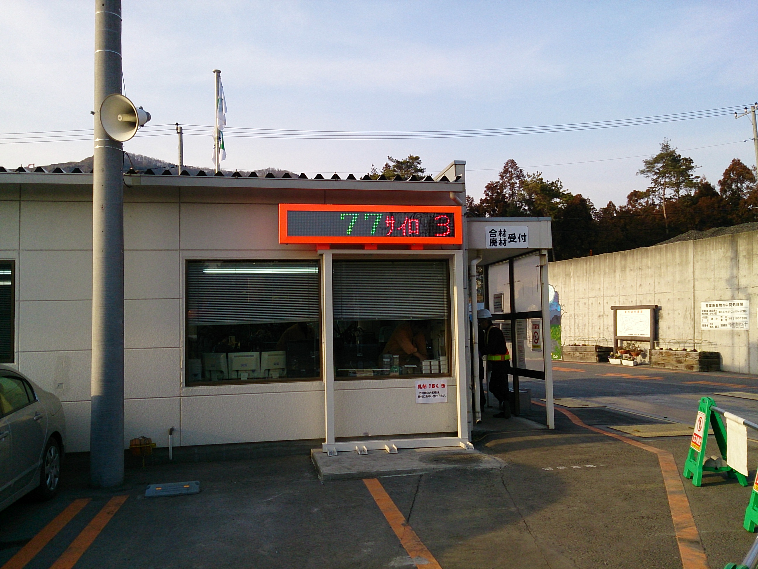 ダンプトラックへの合材積込みを、音声から文字による誘導へと移行すべく、この度、LED表示盤を設置しました。